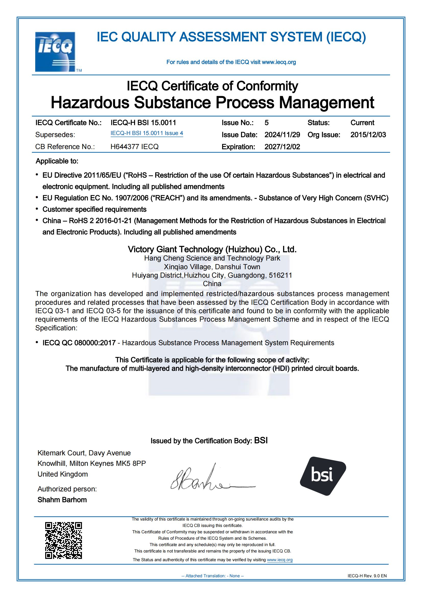 QC080000 Hazardous Substances Management System